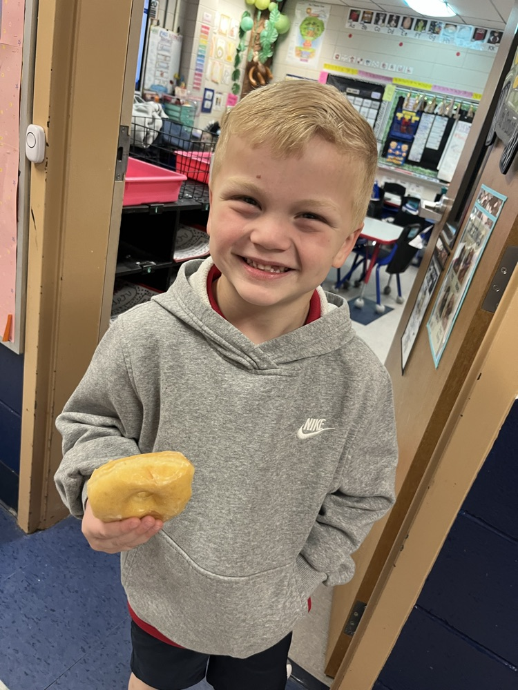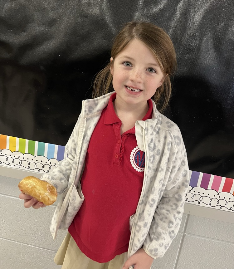 🎉🍩📚Here's one more Little Griffin that turned in her Kindergarten Reading Log! She has gotten a donut from Mrs. Odom every month this school year for completing her Reading log!📚🍩🎉