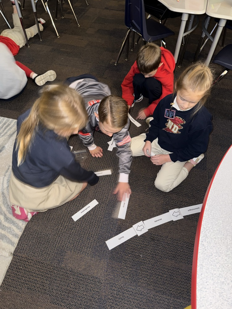 Mrs. Bearden's 2nd grade class is using their knowledge of vocabulary words in ELA to connect them together! They are working in groups to make different connections between the words! Way to go Griffins!♥️🤍💙