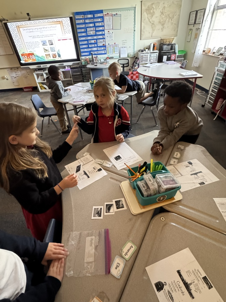 Mrs. William's class is putting their knowledge of fossils to the test! They are sorting pictures into the categories of being a fossil or not being a fossil! Way to work hard!🔎🦖