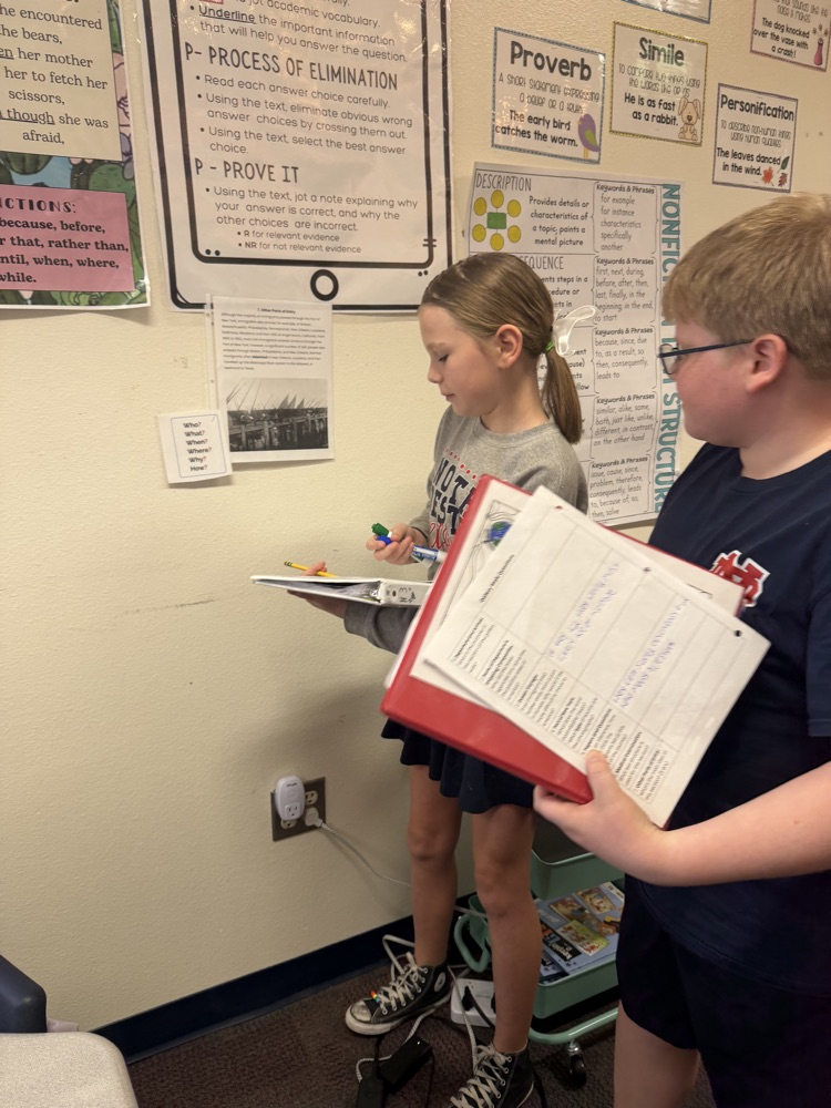 Mrs. Higdon's 2nd graders love learning about text features! They are working together to identify text features around the room! Way to go Griffins❤️💙🤍