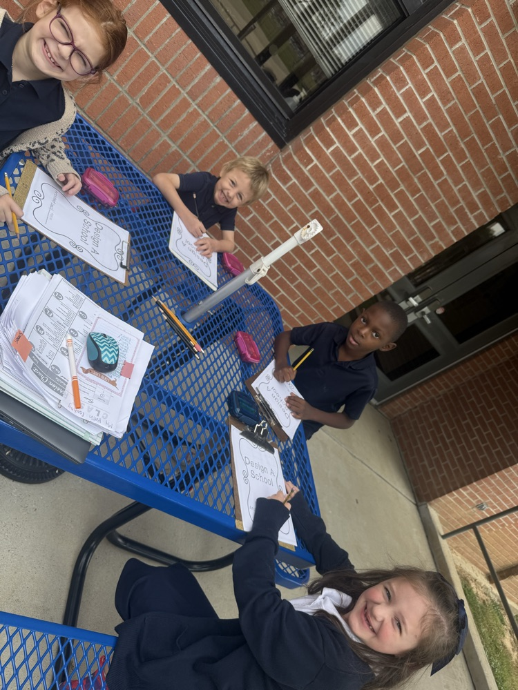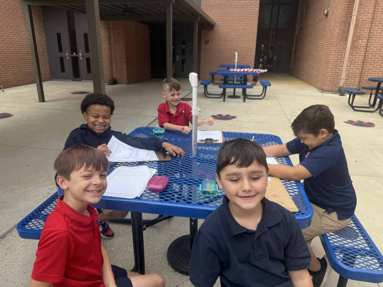 Mrs. Bain's 2nd grade class got the opportunity to take their learning outside!! They are working on an ELA project of designing their own school to tie into their module about schools and community! 📚🚌 #LEADlikeaGriffin